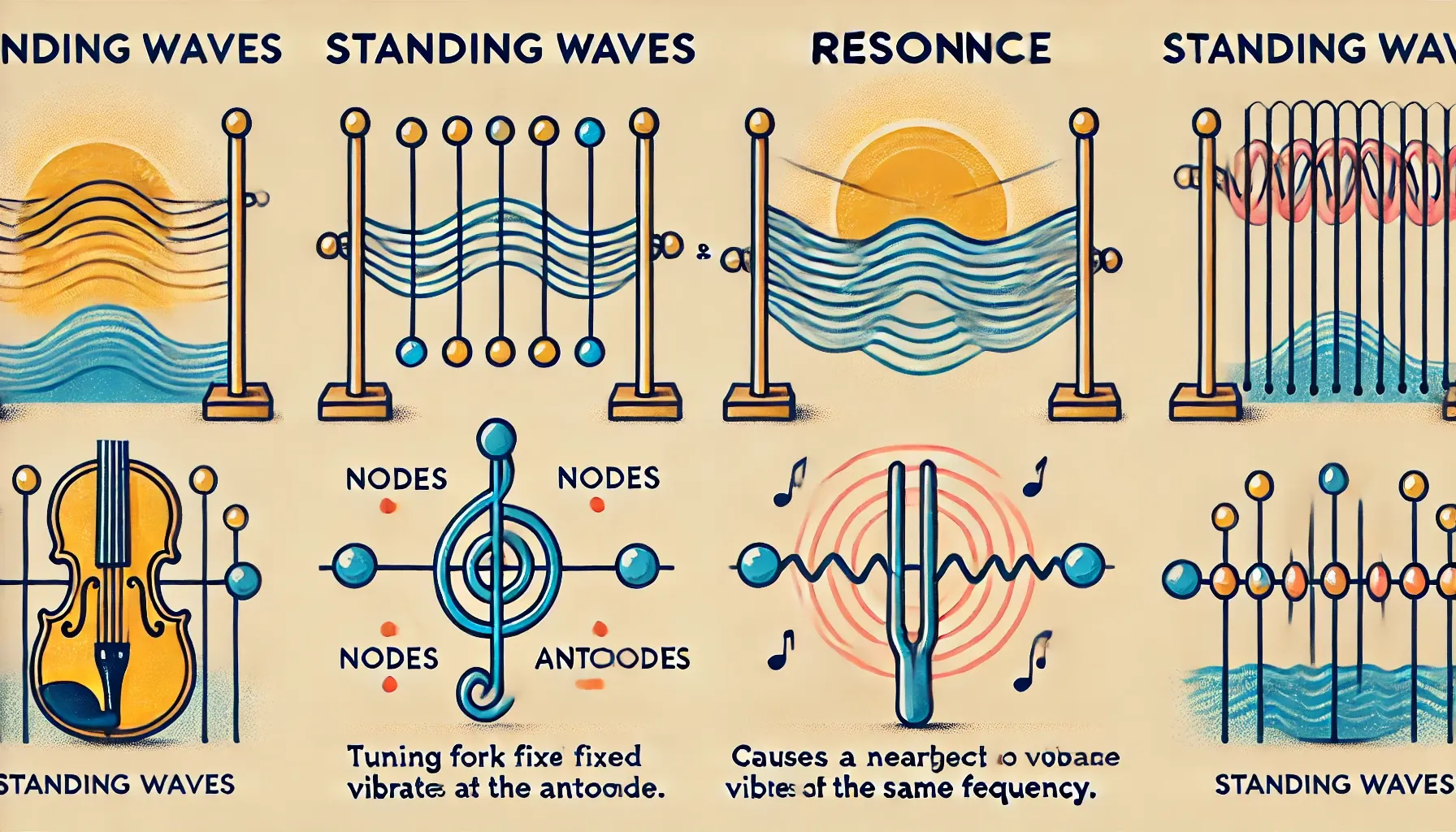Behavior of standing waves in pipes and strings: