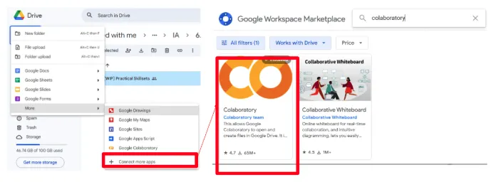 Click on Colaboratory and then click Install or Connect.