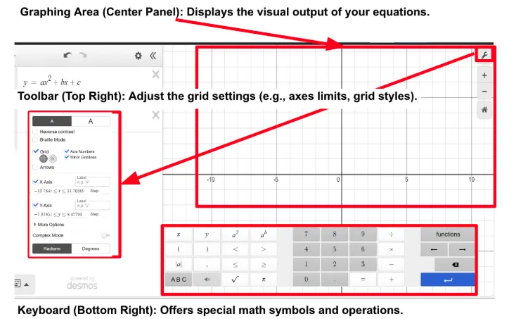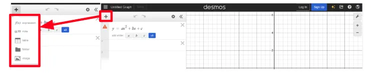 Expression List (Left Panel): Input mathematical equations, functions, and variables here.
