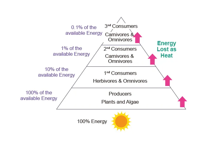 C4.2.12 Reductions in energy availability at each successive stage in food chains due to large energy losses between trophic levels