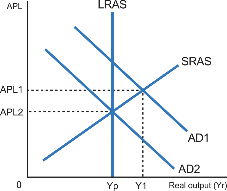 Decrease AD (AD1 → AD2) → close an inflationary gap