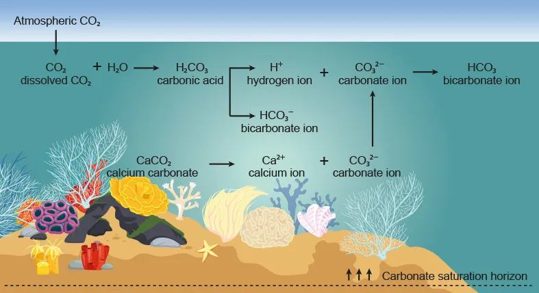 This lowers [CaCO₃] in the water, making it difficult for corals to form their skeletons