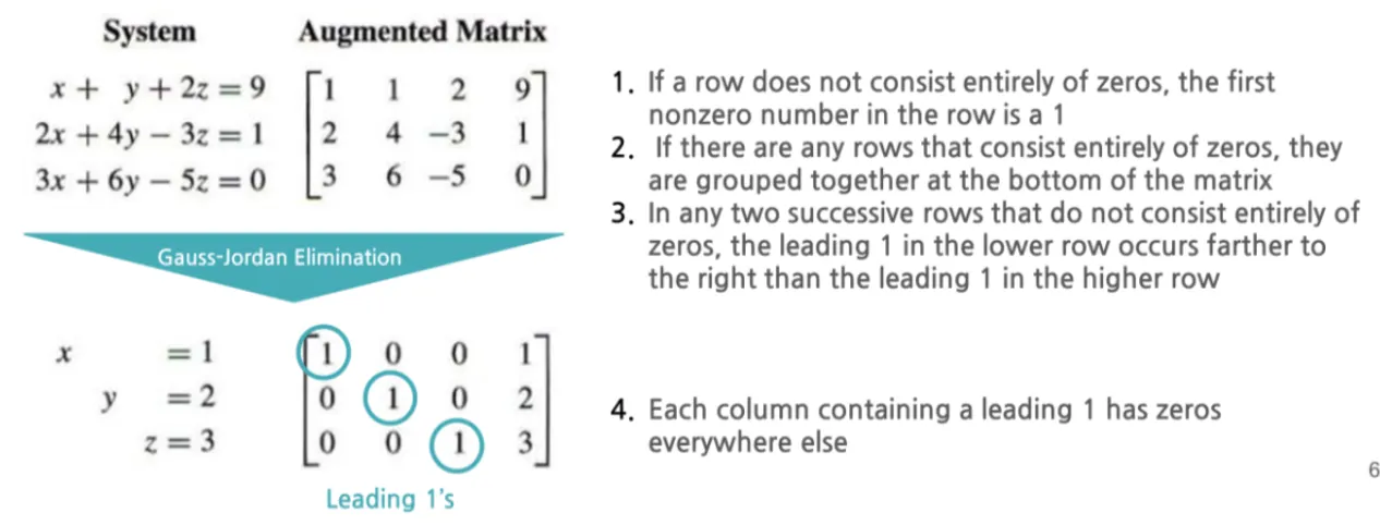 Managing complex (linear) systems of equations that have a large number of equations and unknown variables requires the use of simplifying notation and standardizing procedures