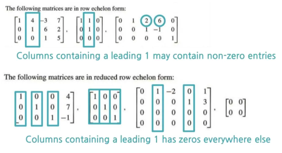 Gauss Elimination (Forward Phase): uses the three aforementioned elementary row operations to introduce zeros below the leading 1’s.