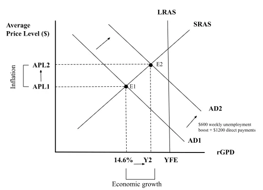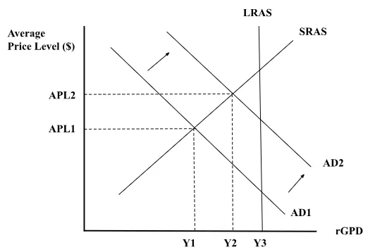 When explaining, the student can say: The increase in economic growth from Y1 → 14.8% will increase in APL1 → APL2 resulting in inflation.