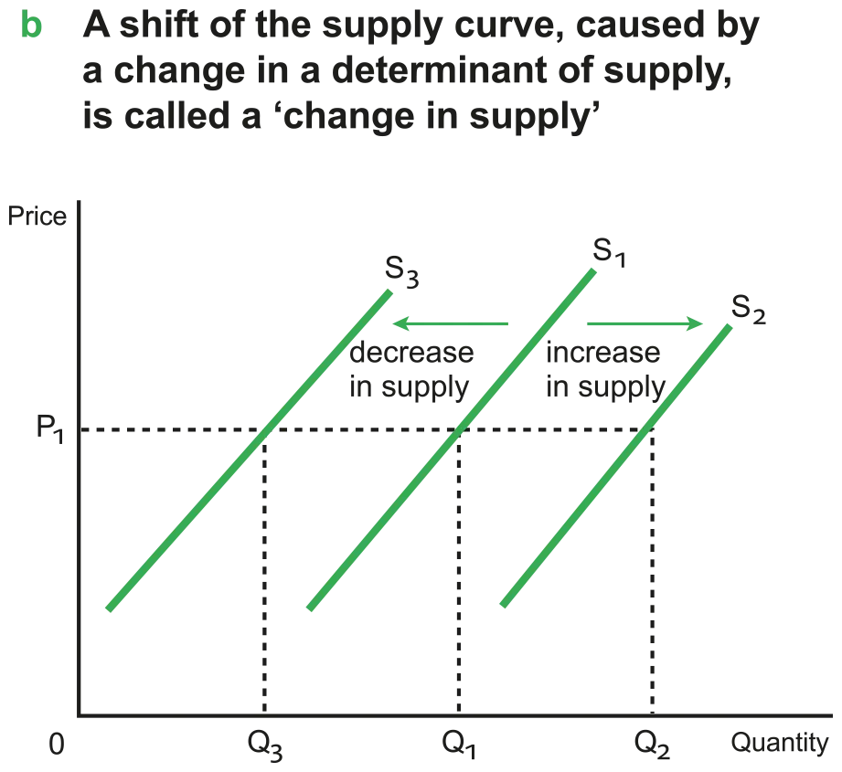 Rightward shift = increase in S, Leftward shift = decrease in S.