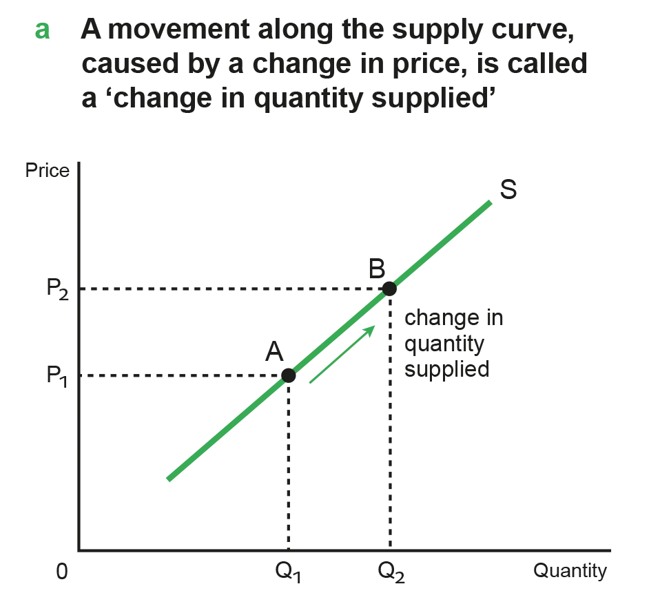 According to the law of supply, if P increases, Q increases = upward movement from A to B.