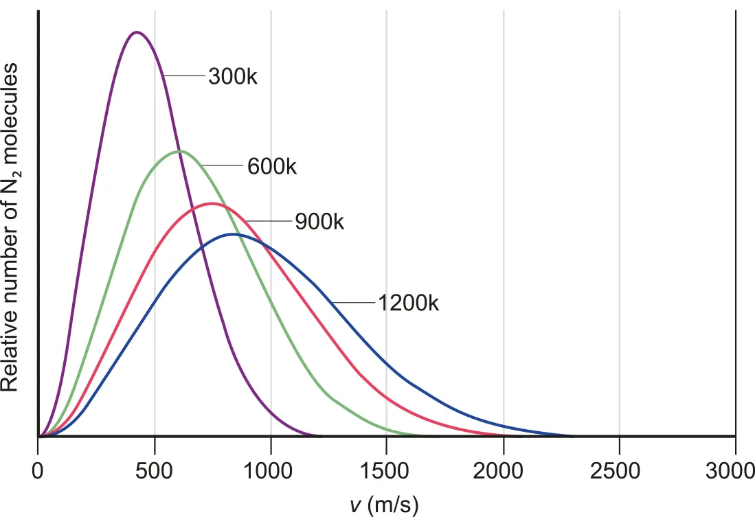 B.3.3-3 Multiple graphs of molecules velocity in different temperatures