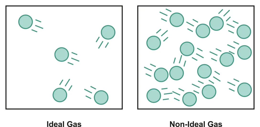 B.3.2-1 2D diagram of ideal gas and non-ideal gas particles