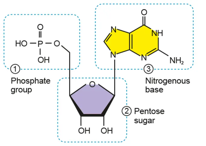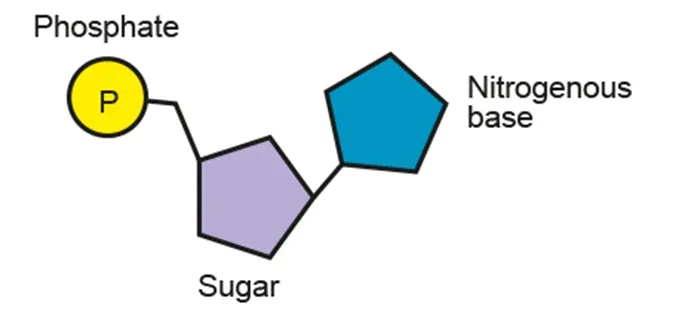 Nucleotide = phosphate group + pentose + nitrogenous base
