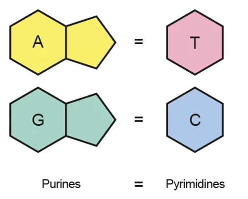 Shows 1:1 ratio of purine to pyrimidine