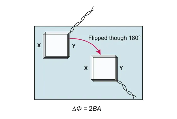 Referring to the definition of flux, the induced emf of the moving coil will be:
