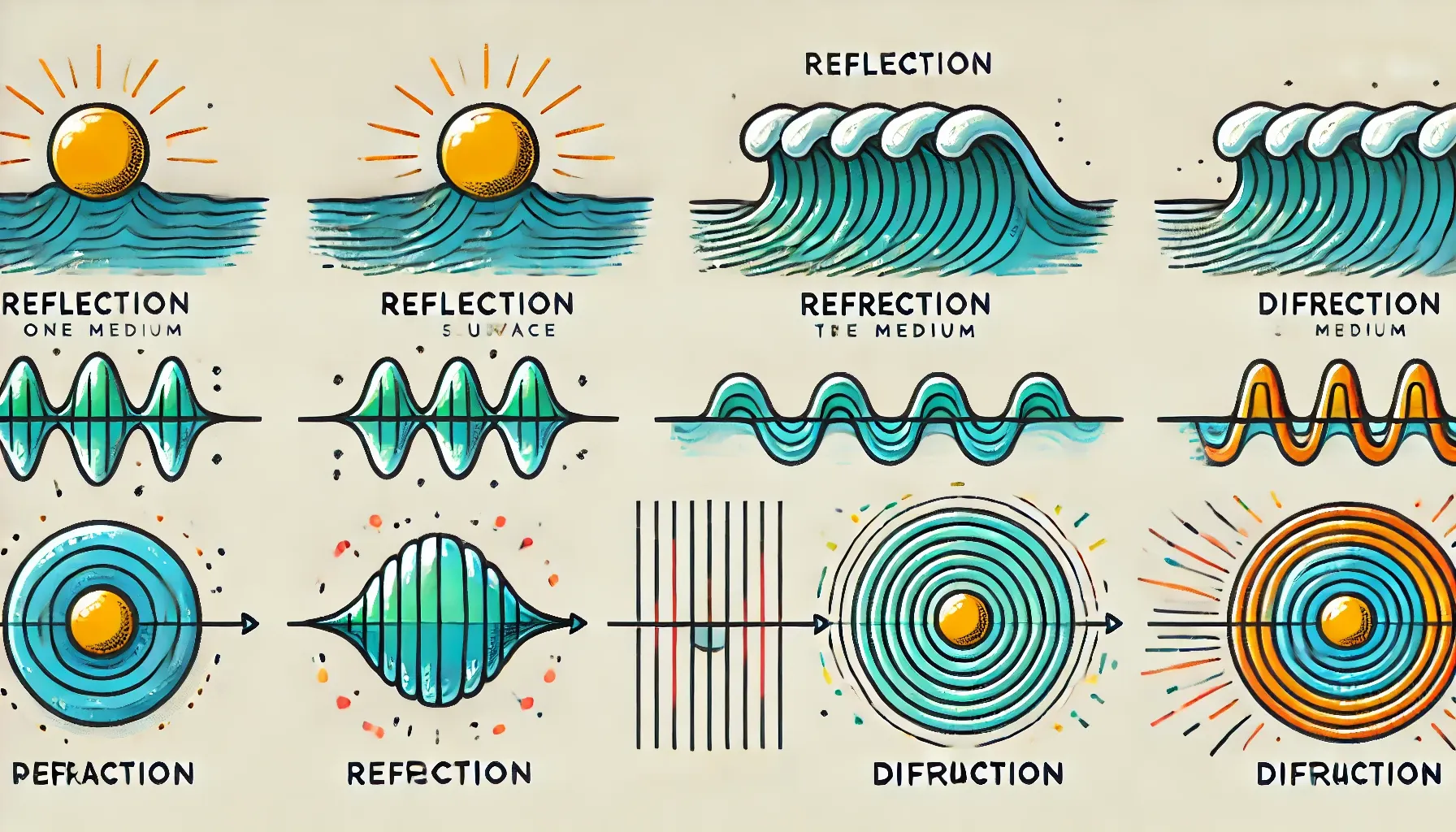Refraction: the change in direction of a wave when it transmits from one medium to another