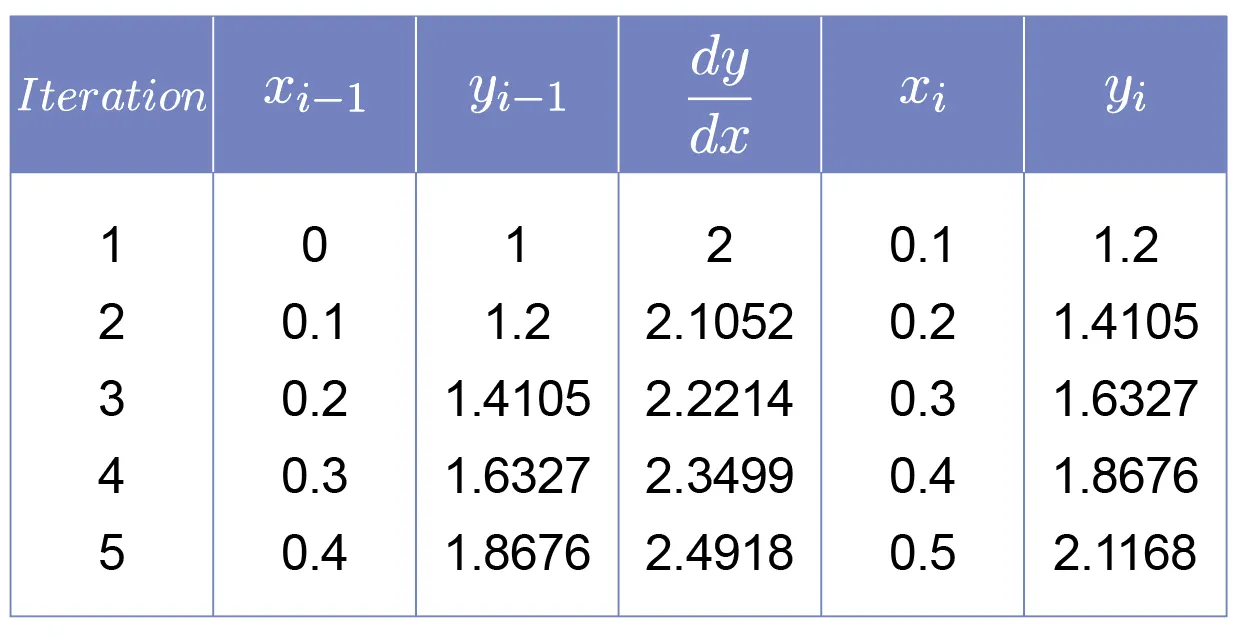 Construct an appropriate table of each iteration to apply Euler’s method using the calculator.