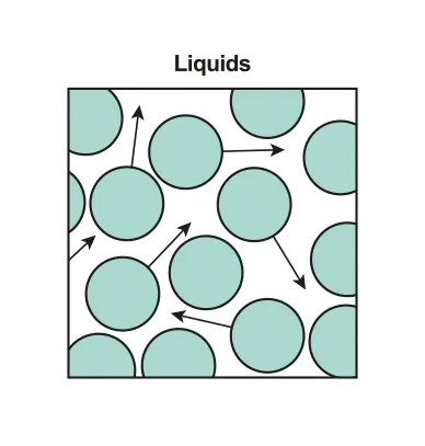 Atoms in a liquid are able to flow and change shape which means that although the average distance between atoms is constant, the atoms are able to move past each other.