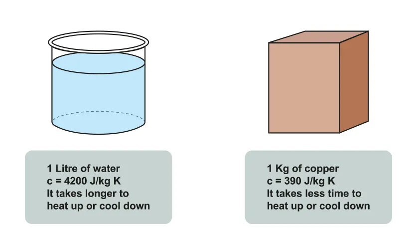 Specific Heat Capacity: thermal energy required to change the temperature of one unit of mass of a substance by one unit of temperature