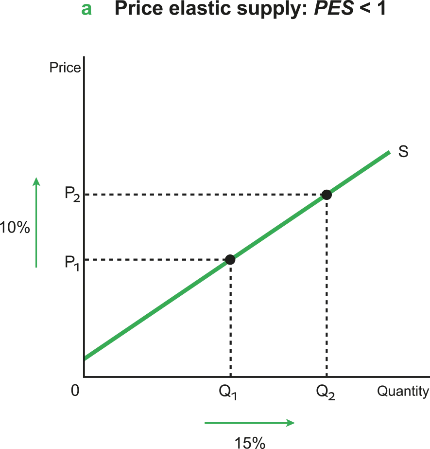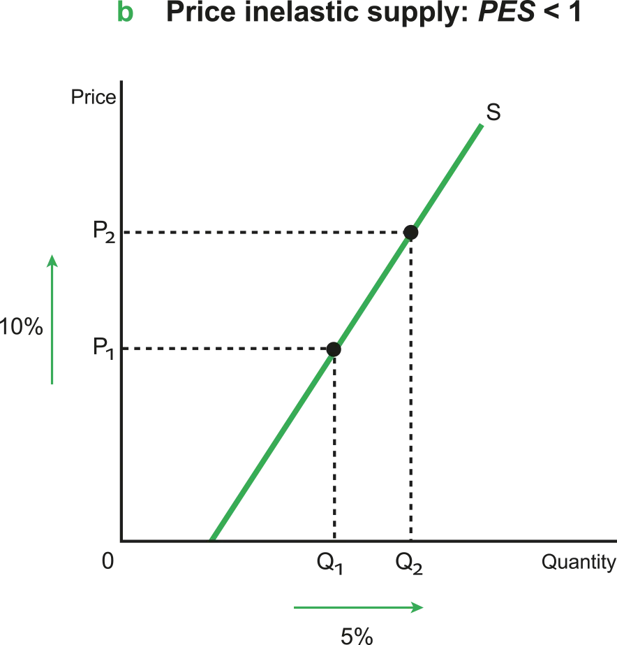 % change in Qs < % change in P → Qs is relatively unresponsive to changes in P.