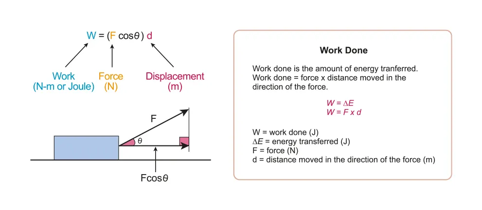 Work is formally defined as the product of the force and displacement in the same direction as the force.