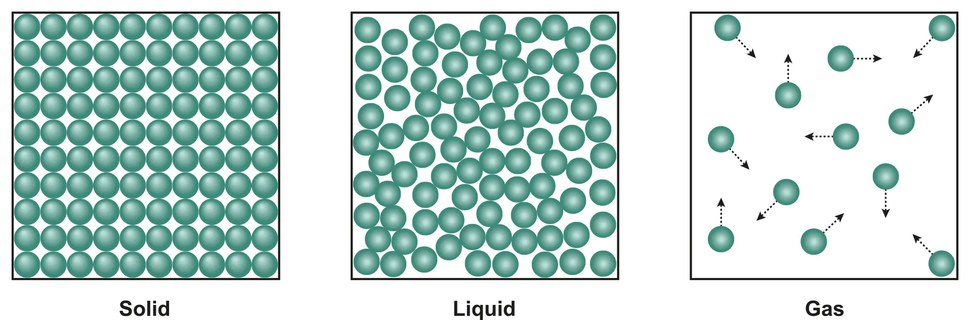 Atoms are fixed in place by a strong force (or bond) between each other. → Strong intermolecular force between atoms (fixed structure)