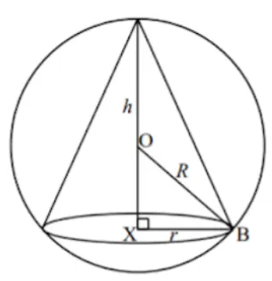 A right circular cone of radius is inscribed in a sphere with centre and radius as shown in the following diagram. The perpendicular height of the cone is denotes the centre of its base and B a point where the cone touches the sphere.