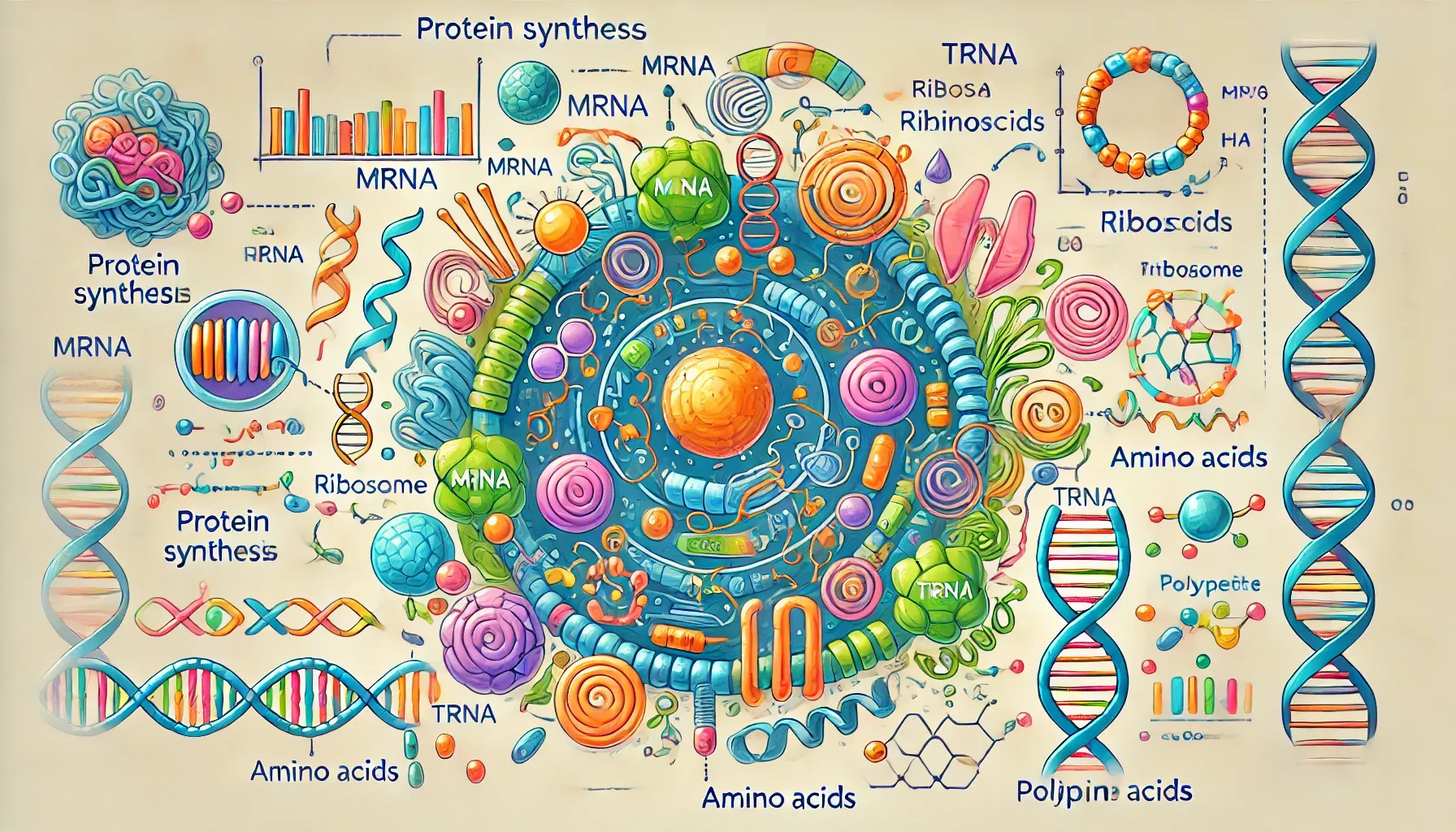 Production of a polypeptide from mRNA by ribosomes