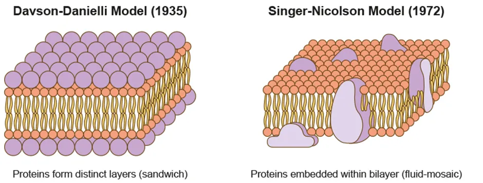 Davson–Danielli Model | Phospholipid bilayer coated with protein molecules on both surfaces