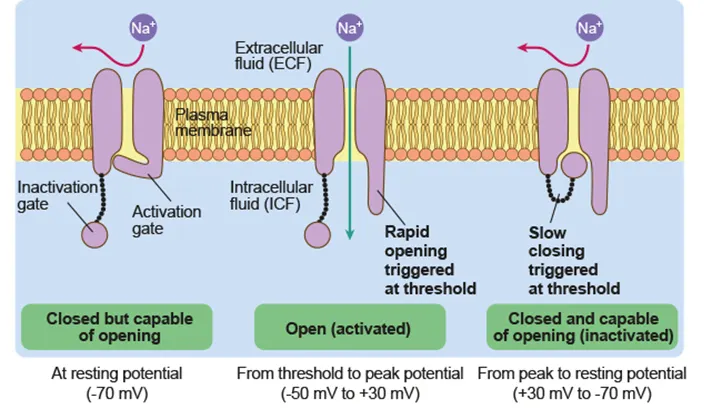 Binding of Ach causes a conformational change in the receptor, allowing Na⁺ ions to enter the cell and generate an action potential