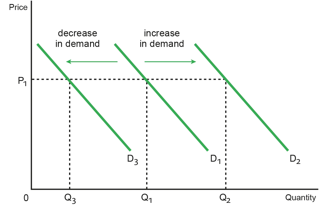 Income ↑ = QD ↓ = D shifts left (D1→D3)
